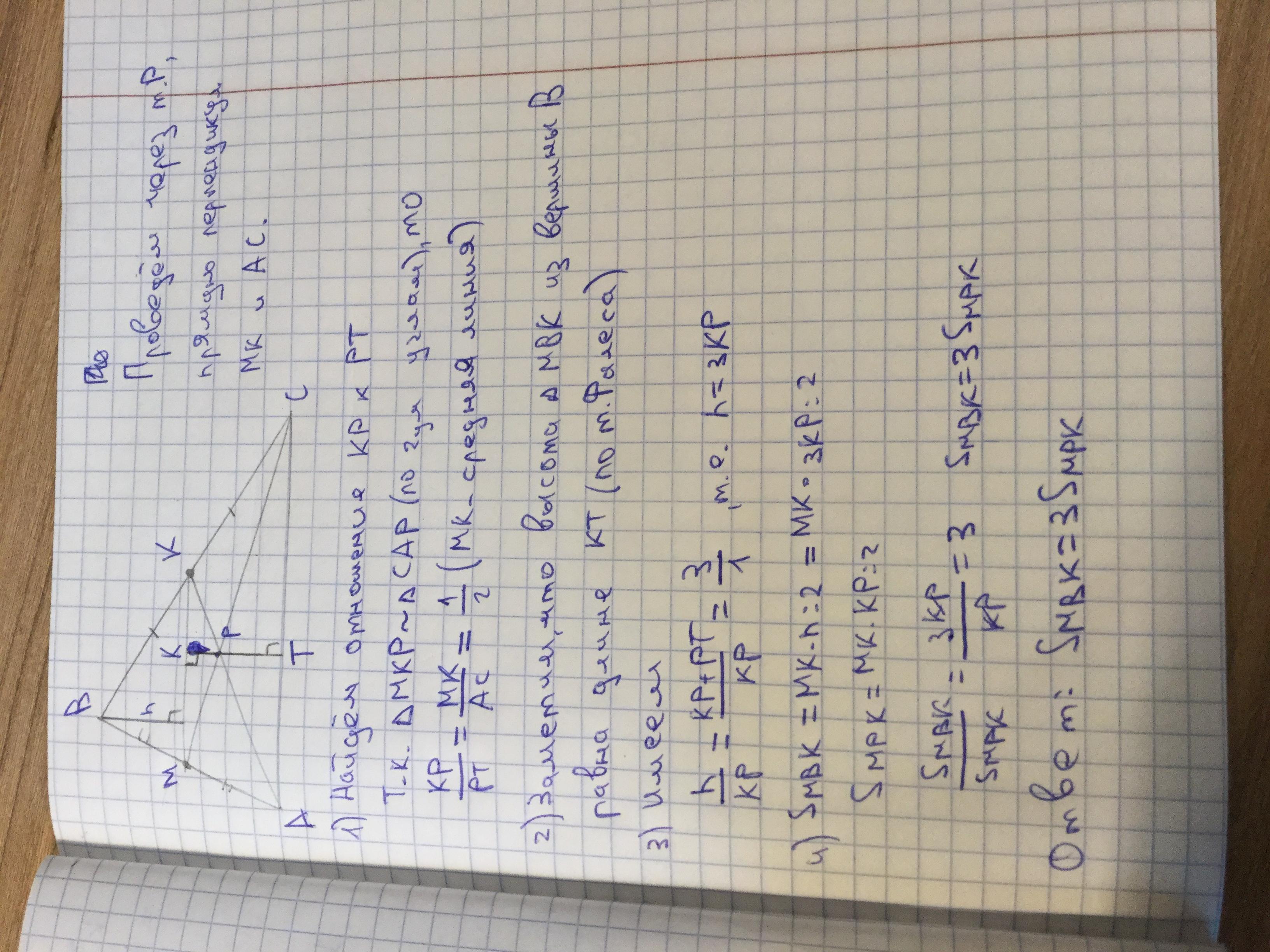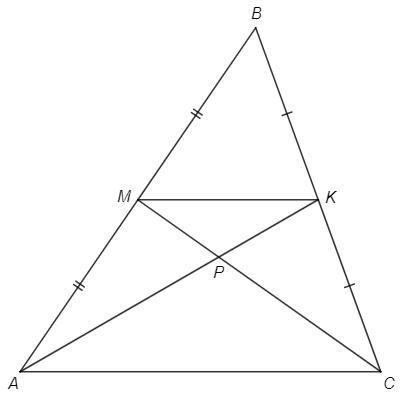 В треугольнике △ABC медианы AK и CM пересекаются в точке P. Докажите, что S△MBK=k⋅S△MKP, где k - натуральное число.