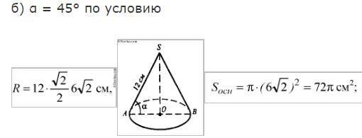2. Образующая конуса, равная 12 см, наклонена к плоскости основания под