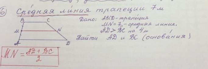 4 : 2 = 2(м) - на столько MN отличается от BC и AD.