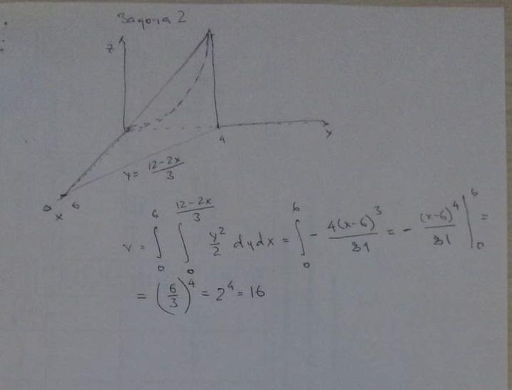 В первом случае это объем пирамиды. Интеграл разбиваем на два.