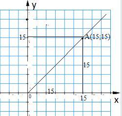 Опустим перпедикуляры из точки А на оси ( точный чертеж -не нужен , достаточно схемы). Получится ΔОАВ-прямоугольный с катетами ОВ =х(А)=15 , АВ=у(А)=15.