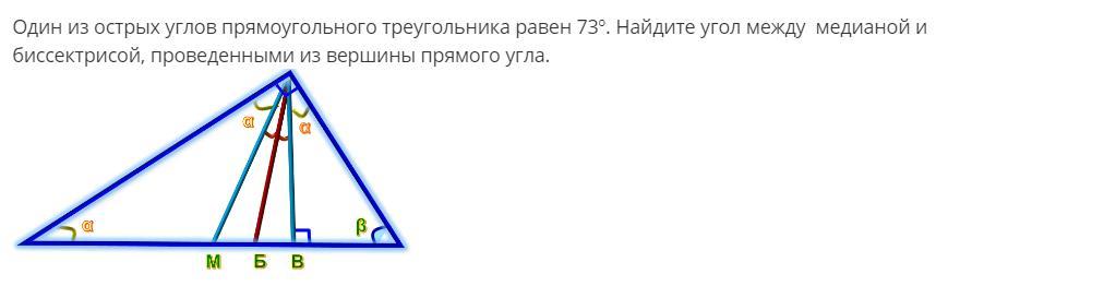 В- прямой угол. ВМ медиана. ВК- биссектриса