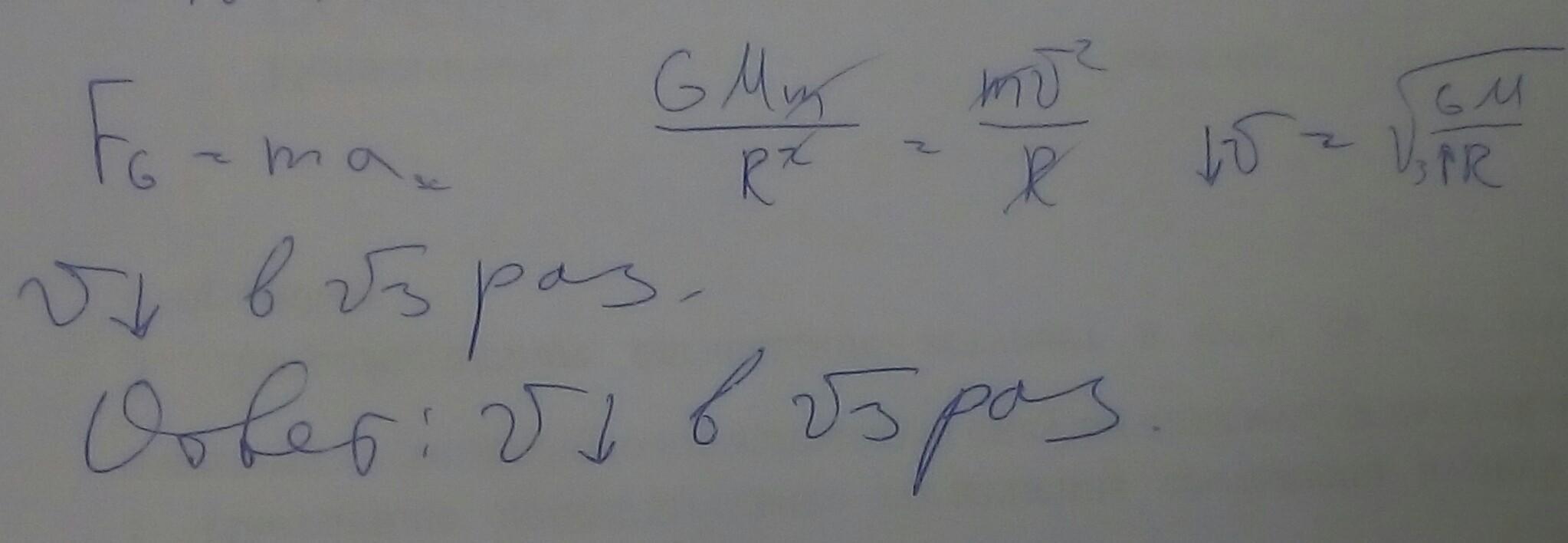 Во сколько раз уменьшается скорость космического корабля при увеличении радиуса круговой орбиты в 3 раза?