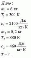 В машинное масло масой 6 кг при температуре 300 к опустили стальную деталь масой 0,2 кг при температуре 880 К.Какая температура установится после теплообмена?"
