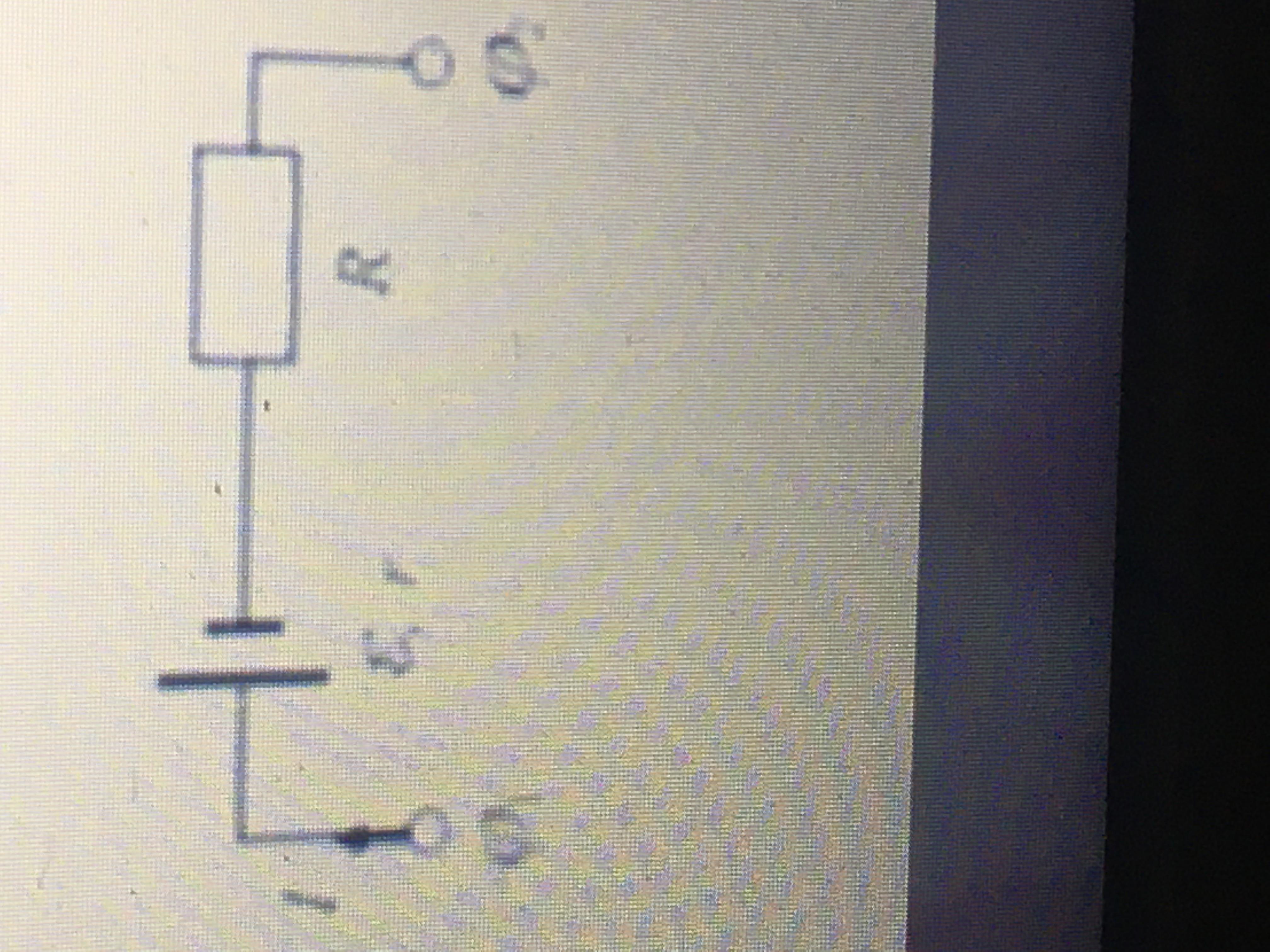 В электрической цепи, схема которой изображена на рисунке, I = 1 A, R = 9 Om, r= 1 Ом, = 5 В. Определить разность потенциалов ф1-ф2