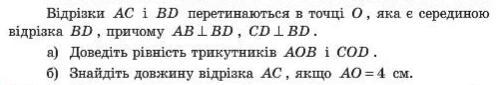△АОВ = △COD, из а) => АО = ОС = 4 см (они гипотенузы этих треугольников)