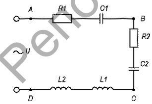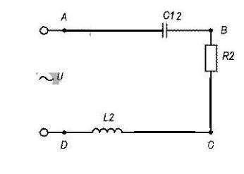 Вычислить значения индуктивности и ёмкости реактивных элементов, определить напряжение на каждом сопротивлении, а также между точками A и C цепи (см. рис.). Построить