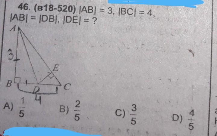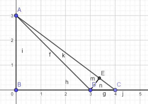 Опустим высоту BF на гипотенузу. AC=5 - египетский треугольник (3,4,5) знает каждый. AB·BC=AC·BF; BF=12/5. Треугольники DEC и BFC подобны (они прямоугольные и имеют общий угол), поэтому