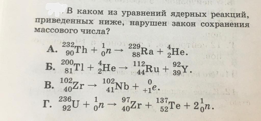 Закон сохранения массового числа нарушен в варианте Г.