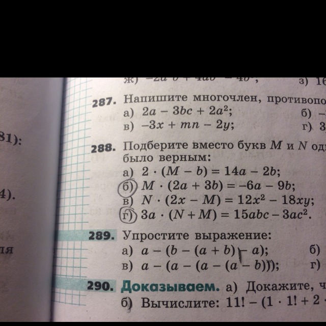 подберите вместо букв N и M одночлены так,что бы равенство было верным