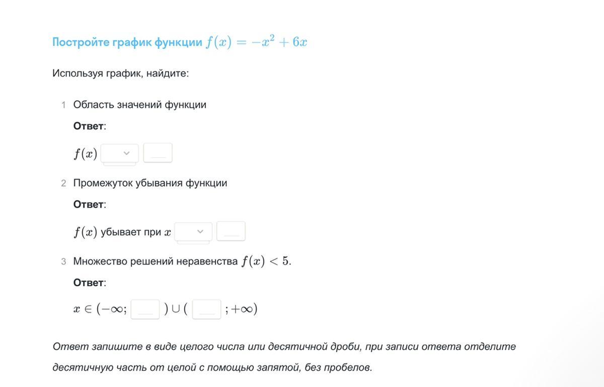 Координаты точек пересечения графиком оси Ох (0; 0) (6; 0).