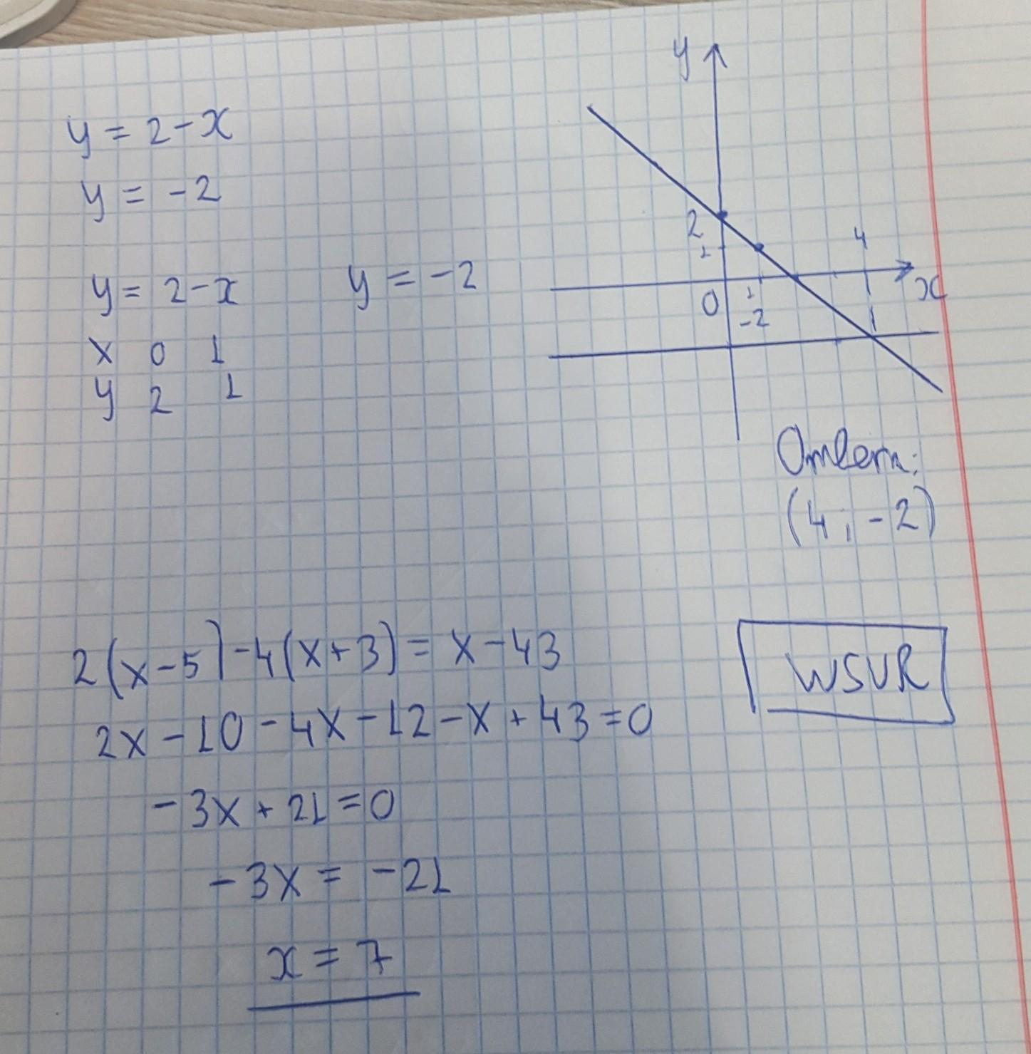 Побудуйте в одній системі координат графіки функцій у=2-х і у=-2 знайдіть координати точки їх перетину.
