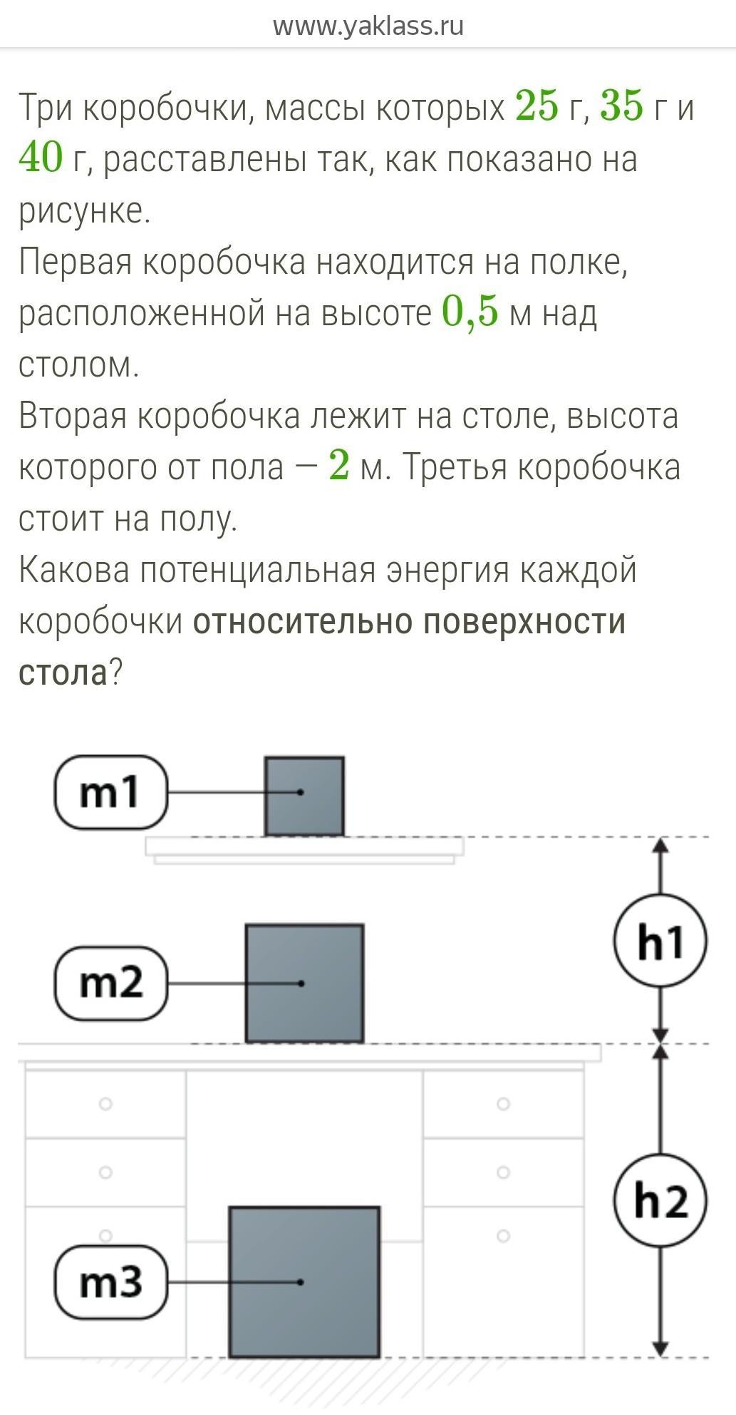 (2 коробочка): П=9.8×35×2=686 Дж