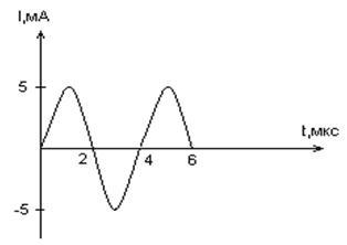 По графику зависимости силы тока от времени в колебательном контуре определите, какие преобразования энергии происходят в колебательном контуре в интервале времени от 1мкс до 2мкс?