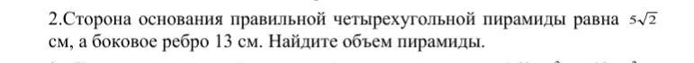V = 1 / 3 S * h = 50 * 12 /3 = 200