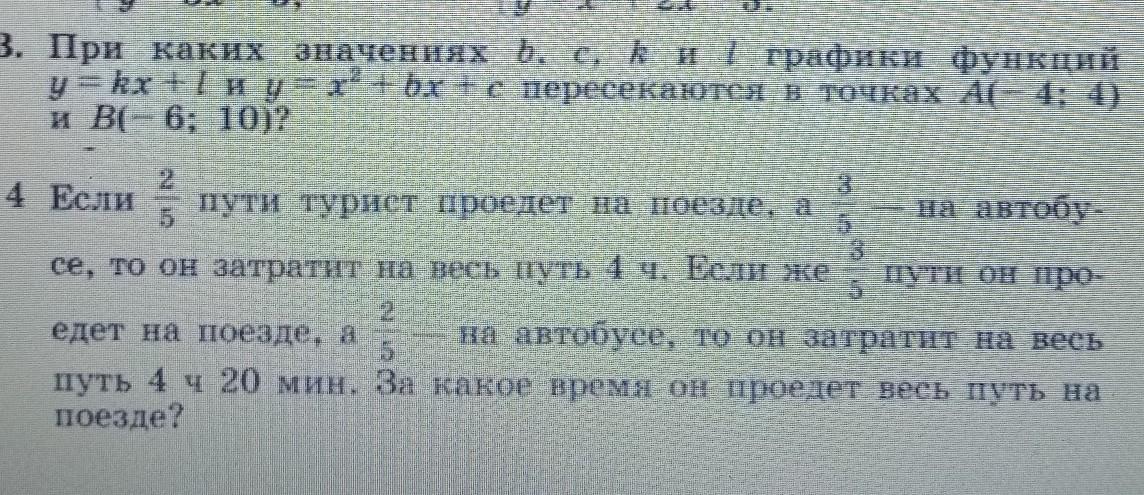 у=kx+l y=x²+bx+c A(-4; 4); B(-6; 10)