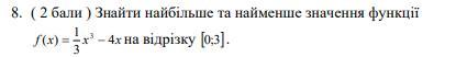 Ответ: f(x)наим=-5¹/₃ f(x)наиб=0.