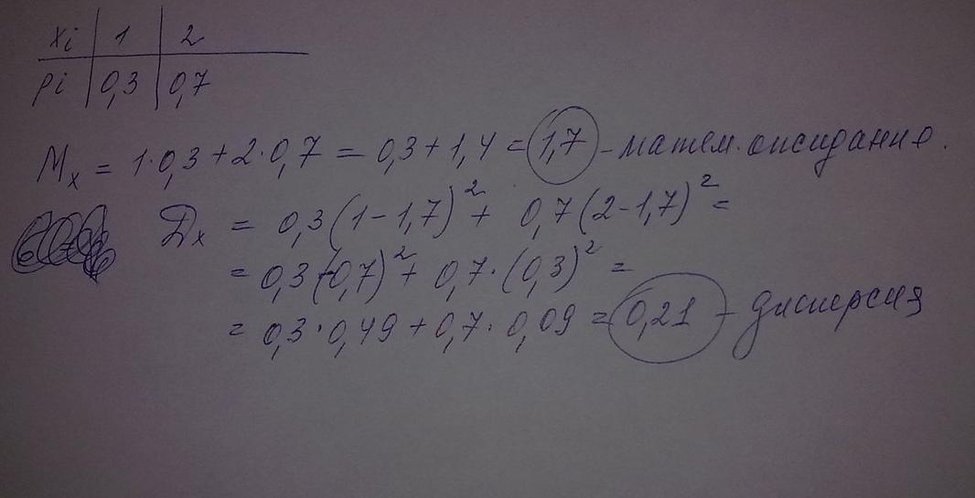 да правильно , дисперсия 0,21 и мат ожидание 1,7