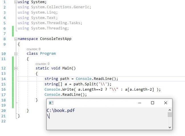 - Console.Write( a.Length==2 ? "\\" : a[a.Length-2] );