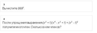 2) (х²+1)(х⁴-х²+1)+(х³-1)²=х⁶+1+х⁶-2х³+1==2х⁶-2х³+2 - членов три