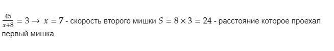 2) 45-24 = 21 км - путь второго медведя