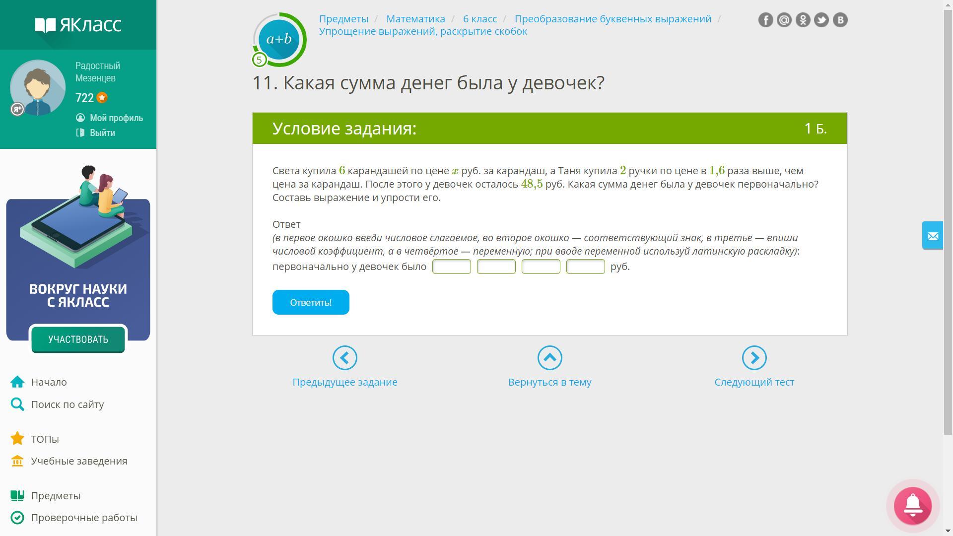 6)упростим выражение: 6х+2*1,6х+48,5 = 6х+3,2х+48,5=9,2х+48,5 рублей