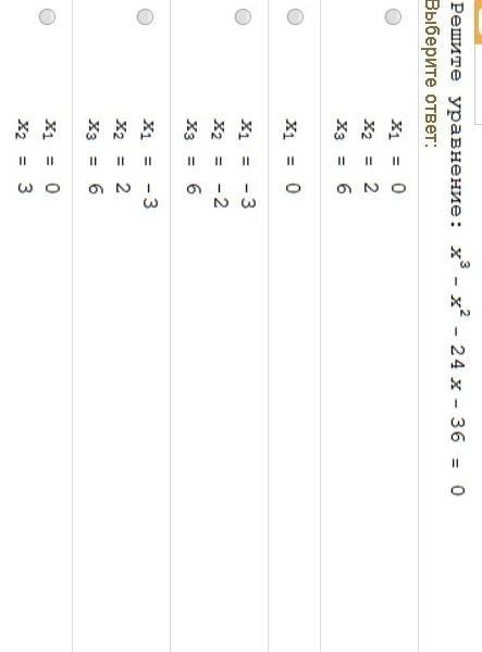 (x-6)(x²+5x+6)=0; x²+5x+6=0 D=25-24=1