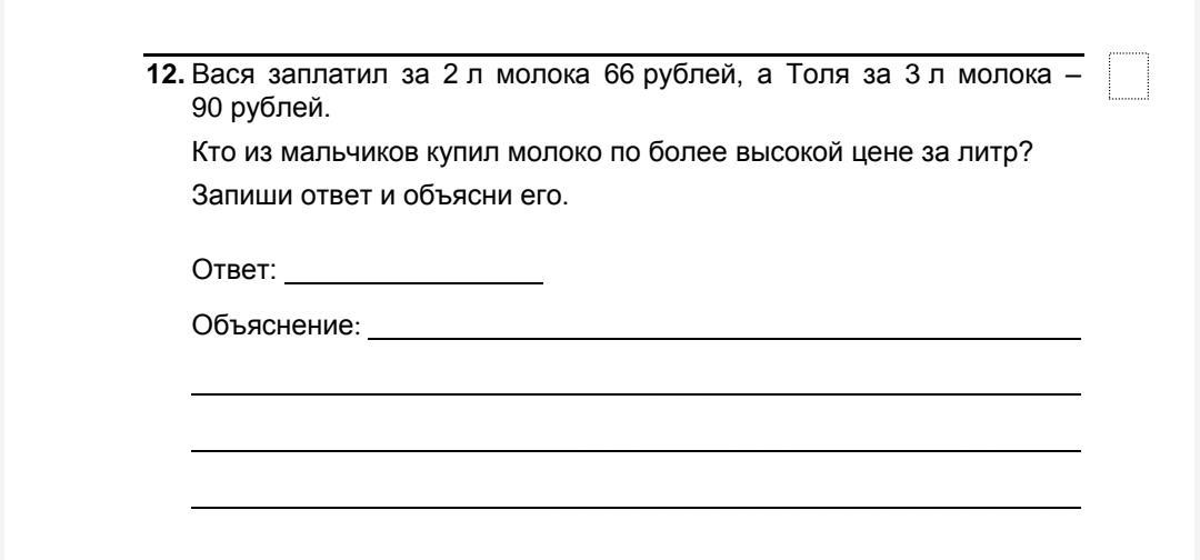 Ответ Вася купил молоко на 3 рубля дороже за один литр чем Толя .