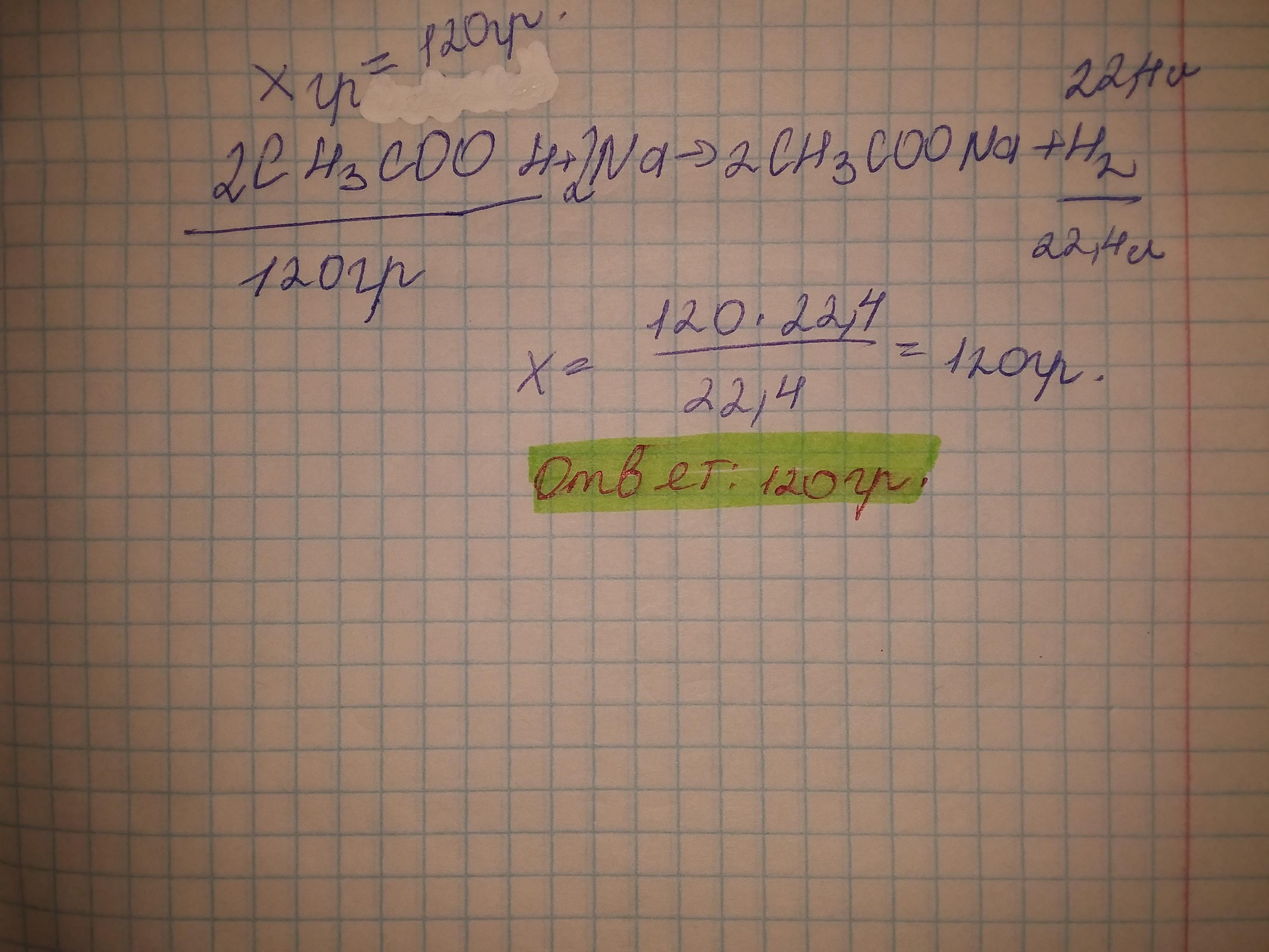 m(CH3COOH) = n * M = 2 * (12 + 3 + 12 + 32 + 1) = 120 гр