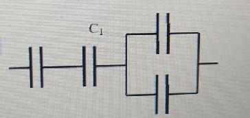 Определите электроёмкость С1 конденсатора, если ёмкость батареи, изображённой на рисунке 0,5 мкФ. Электроёмкость не отмеченных конденсаторов С=1 мкФ