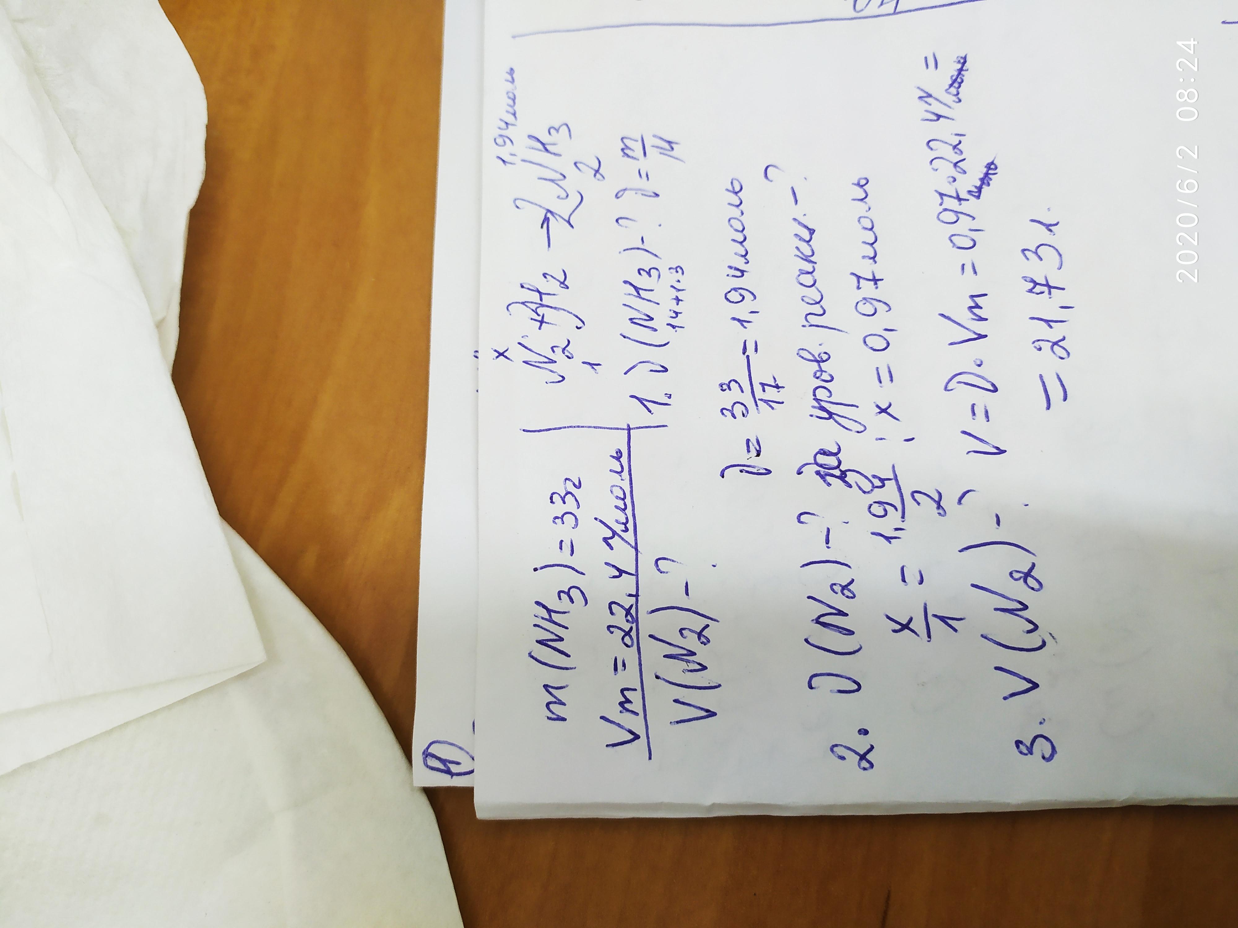 n=m/M ; n(NH3)=33 : 17г/моль=1,95моль