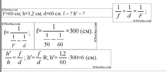 Главное фокусное расстояние двояковыпуклой линзы 55 см. Предмет высотой 1,2 см помещен на расстоянии 60 см ее линзы. Где и какой высоты получится изображение этого предмета?