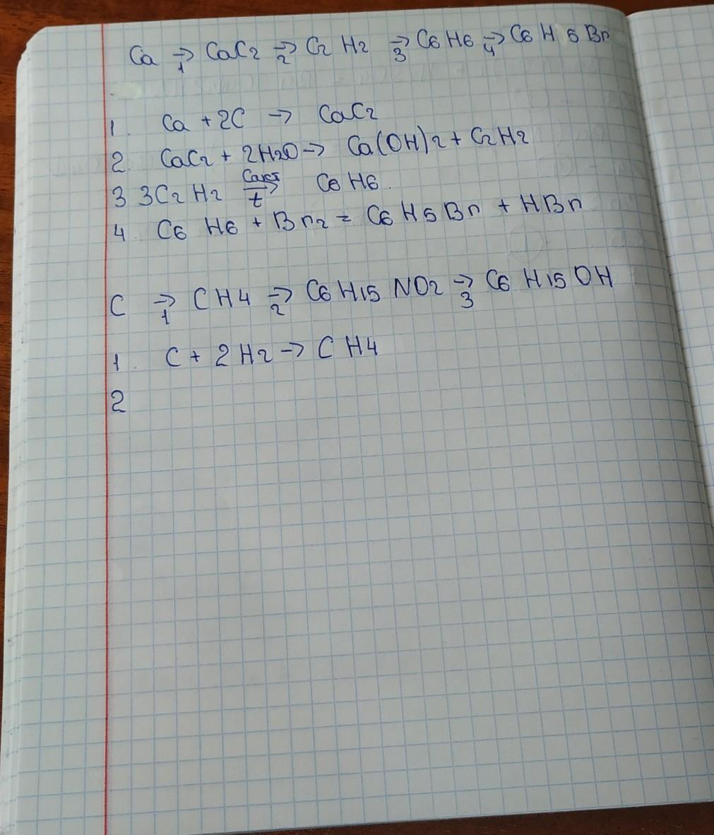 ХИМИЯ, СРОЧНО ,пожалуйста помогите осуществить превращениеСа→СаС2→С2Н2→ С6Н6→ С6Н15Вr, С→СН4 С6Н15NO2 С6Н15OH