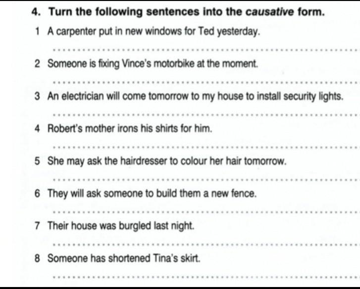 4. Turn the following sentences into the causative form.