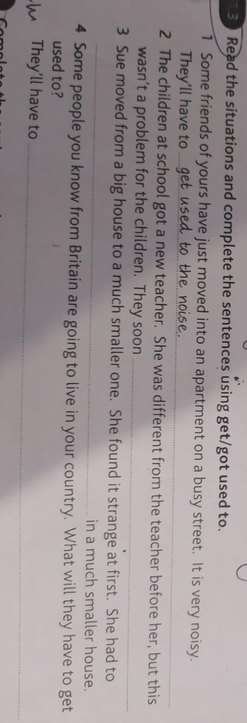 2 got used to a new teacher 3 get used to live 4 get used to live in my country