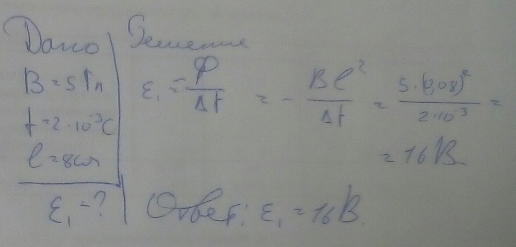 Магнитное поле с индукцией 5 Тл выключается за 2 мс. Среднее значение ЭДС индукции, которая возникнет в проволочной квадратной рамке со стороной 8 см