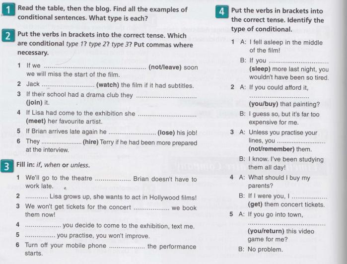3 A: Unless you practise your lines, you WILL NOT (WON'T) REMEMBER them. (TYPE 1)