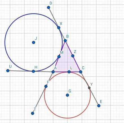 вневписанная окружность с центром G ∩ BC = Y (окружность расположена за точку С)