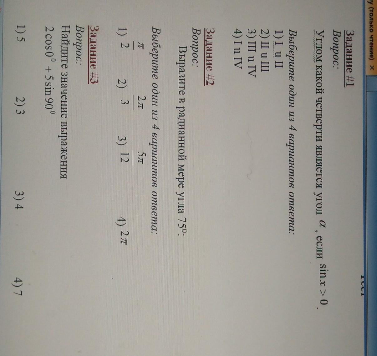 1)Синус положителен, когда угол находится в 1 или 2 четвертях