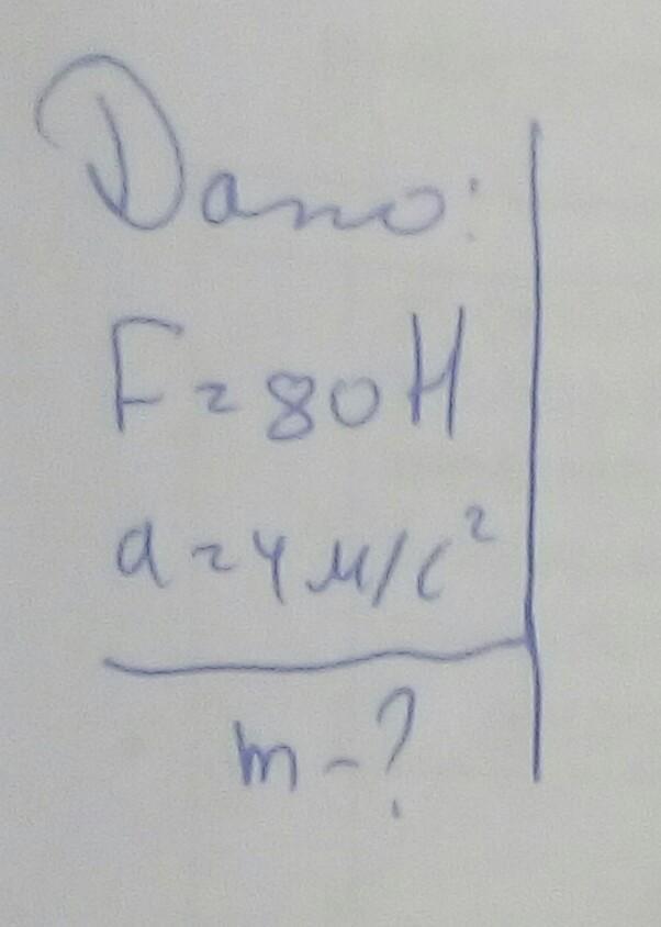 Тело движется в инерциальной системе под действием силы 80 Н, приобретает ускорение, равное 4 м\с 2. Найдите массу данного тела.