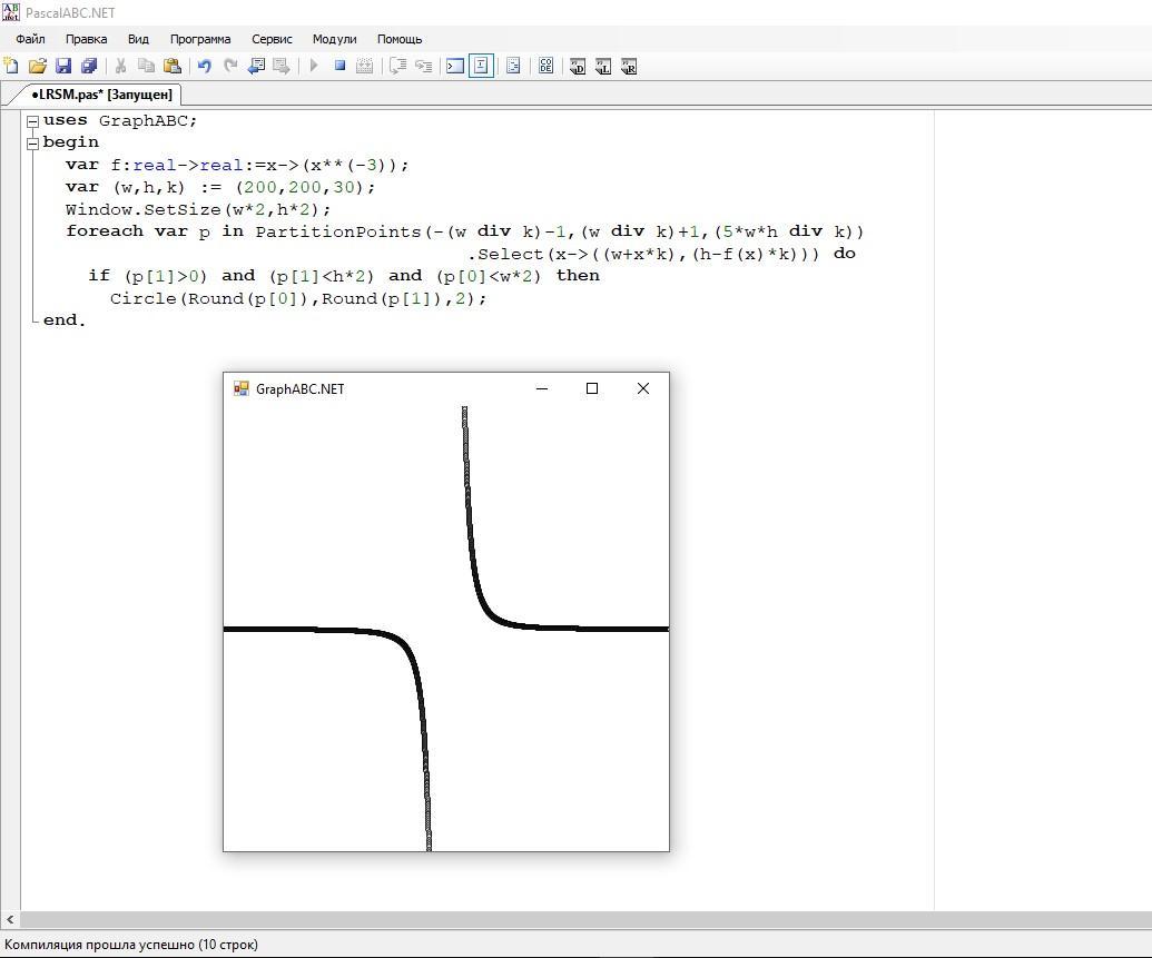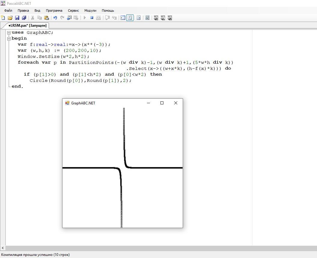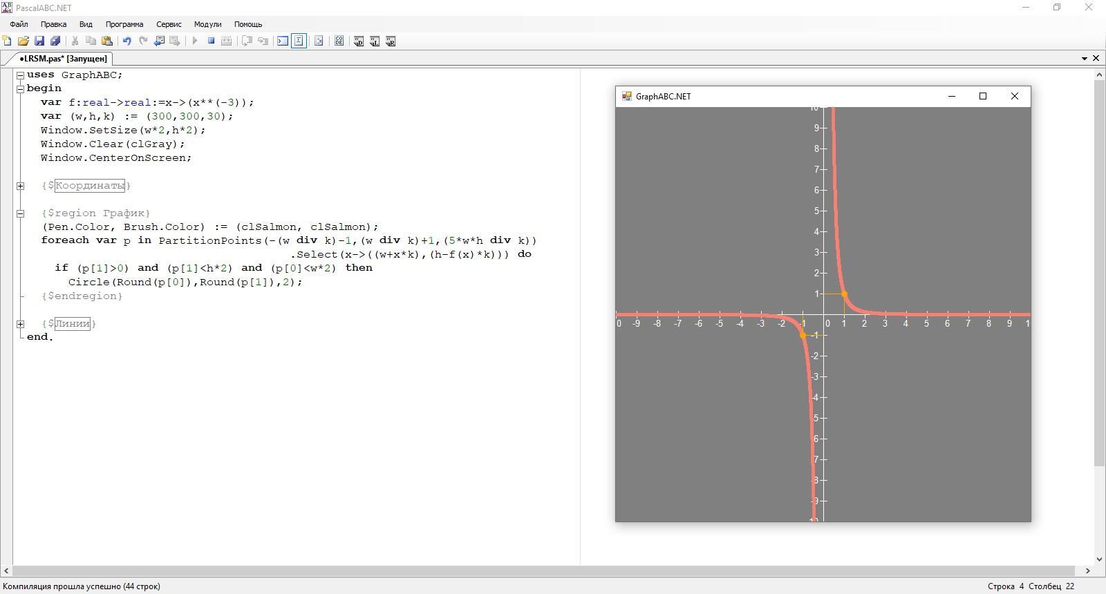 СРОЧНО!!!! Помогите написать код на Паскале, нужно построить график функции x=y^(-3).