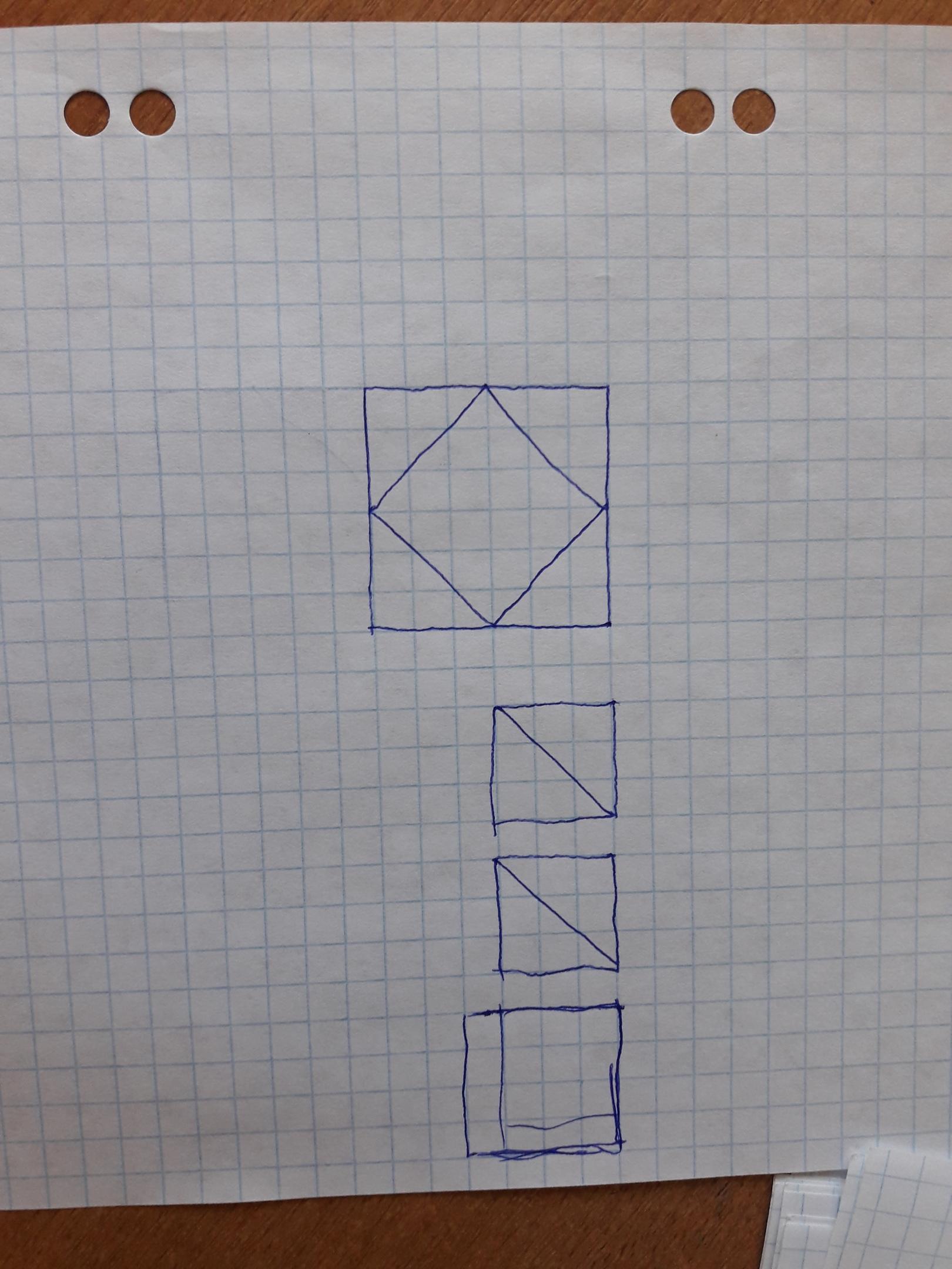 Разрежьте квадрат на несколько частей, из которых можно сложить три квадрата. Нарисуйте, как надо резать и как — складывать?