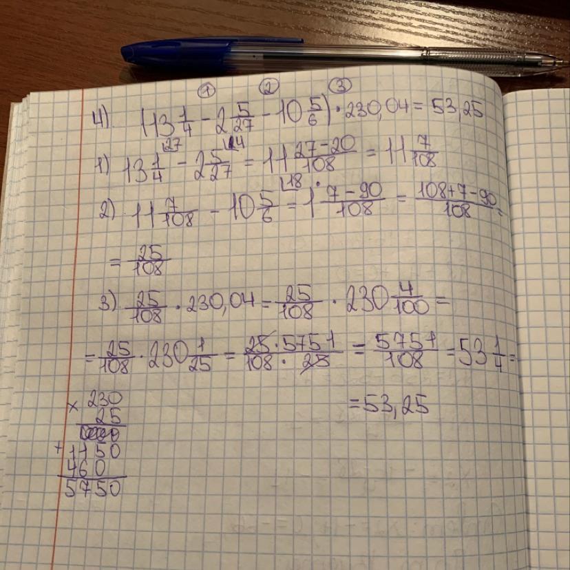 25/108*230,04=25/108*230 4/10=25/108*2304/10=5/6*128/2=