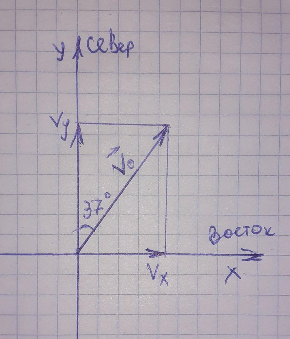 значит угол между оcью ординат и вектором направления скорости самолета 37°.