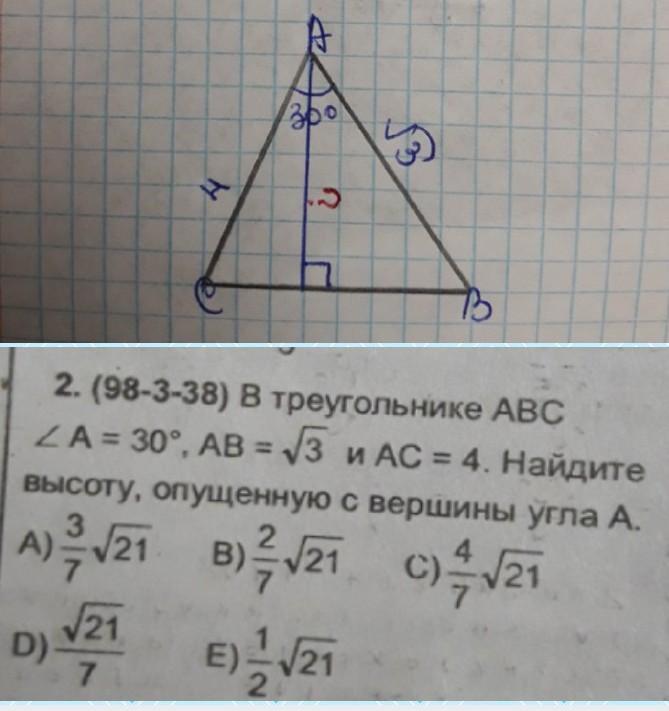 Приравнивая получившиеся выражения для площади треугольника, находим требуемую высоту: