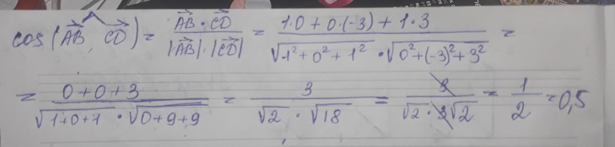 ЧЕМУ РАВЕН КОСИНУС УГЛА МЕЖДУ ВЕКТОРАМИ AB И CD