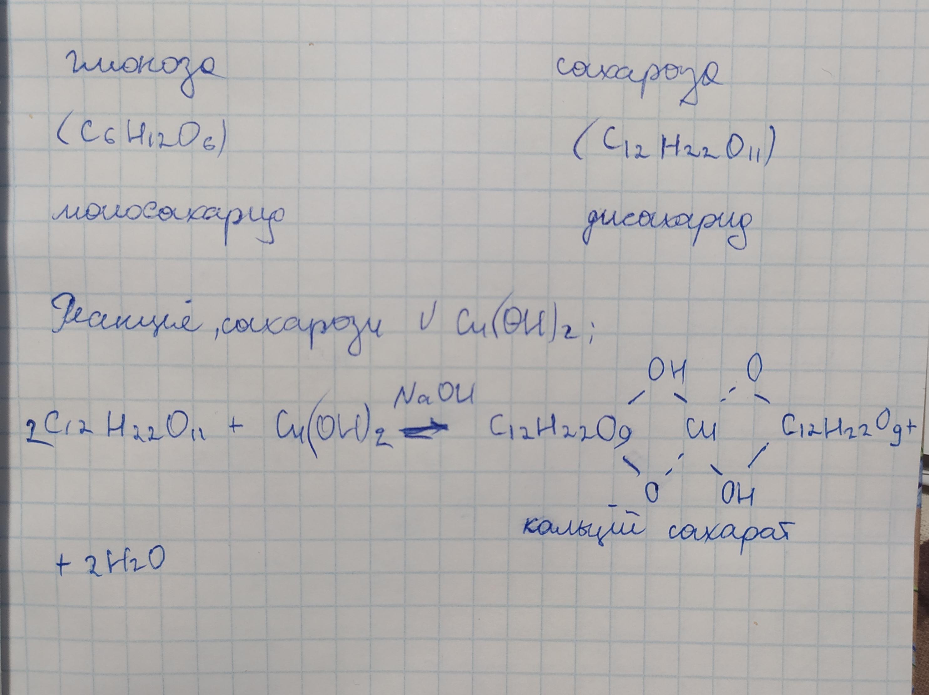 Що робили: Добули з NaOH і CuSO4 свіжий купрум (ІІ) гідроксид (синій осад) і добавили його у дві пробірки, гарно струсили