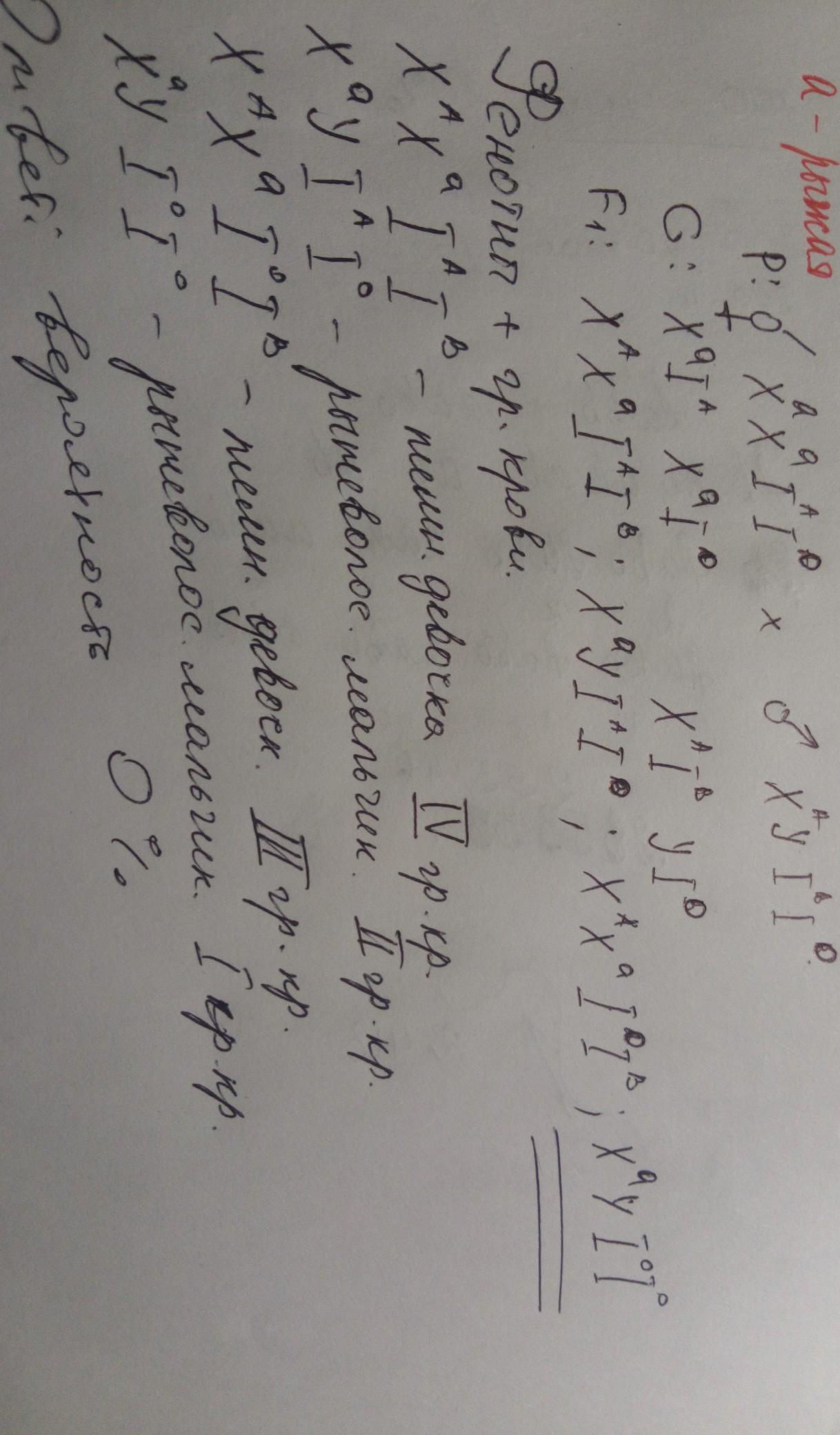 даже если брать группы крови как АА и ВВ , то всё равно рыжеволосой девочки с 4гоуппой не получается + взять АА и ВВ нельзя по той причине, что тогда по решению мы не найдем мальчика из условия задачи. и еще нужно учесть что 2+3 группа , то потомство любой группы