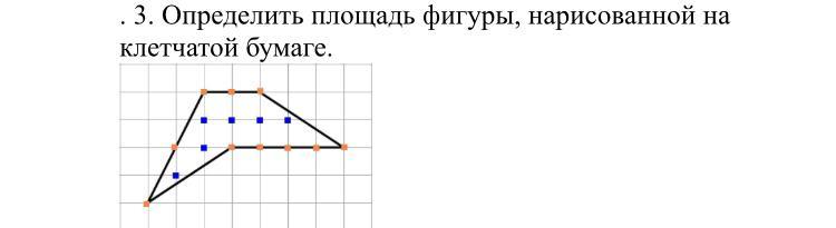 где S — площадь многоугольника, L — число целочисленных точек внутри многоугольника (синие точки на рисунке), a B — количество целочисленных точек на его границе (оранжевые точки на рисунке).