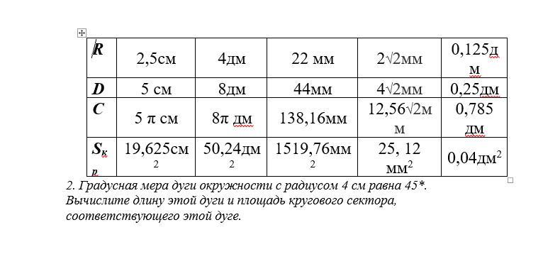 Градусная мера дуги окружности с радиусом 4 см равна 45*.